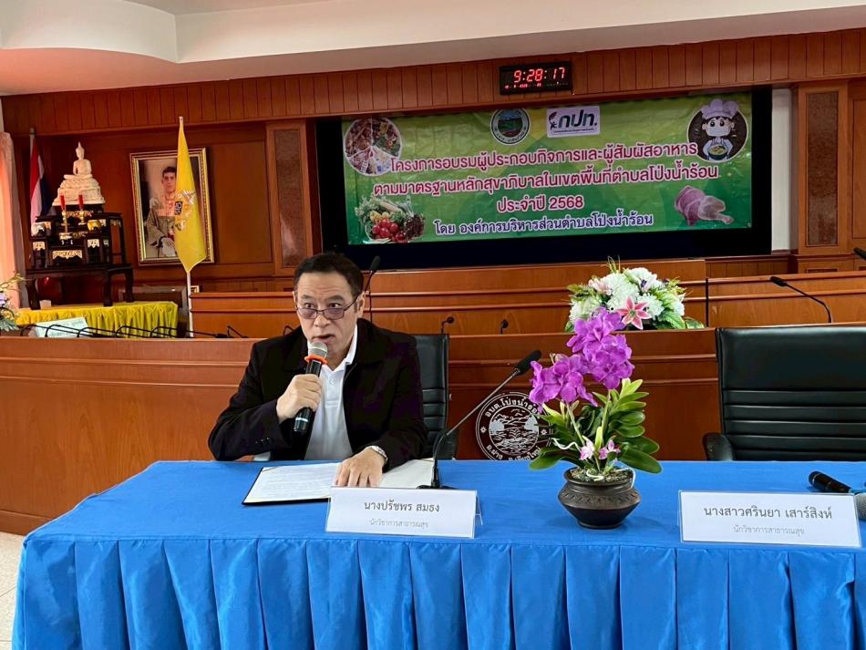 โครงการอบรมผู้ประกอบกิจการและผู้สัมผัสอาหารตามมาตรฐานหลักสุขาภิบาลในเขตพื้นที่ตำบลโป่งน้ำร้อน ประจำปีงบประมาณ 2568 [11 กันยายน 2568]