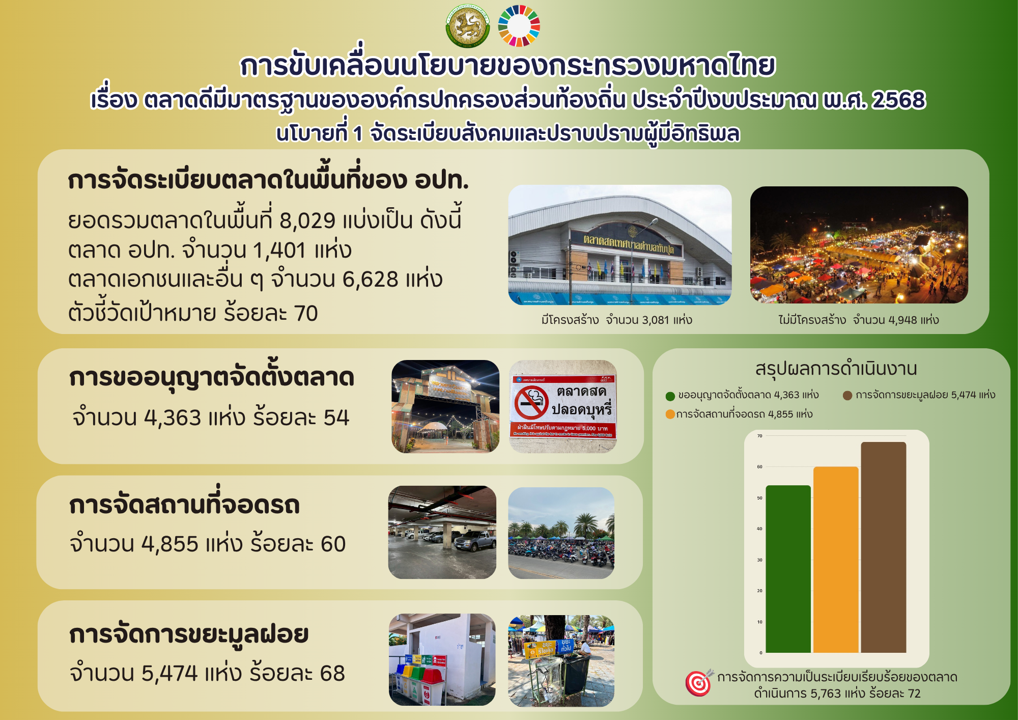 ผลการขับเคลื่อน “ตลาดดีมีมาตรฐานขององค์กรปกครองส่วนท้องถิ่น” ประจำปีงบประมาณ พ.ศ. ๒๕๖๘
