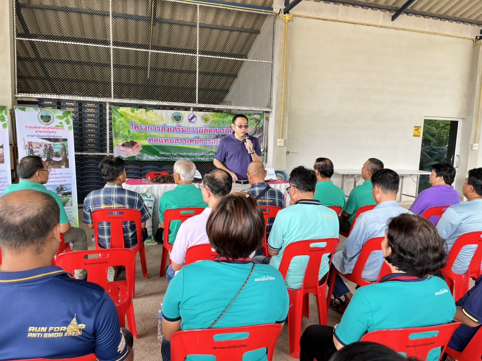 ชื่อเรื่อง : โครงการส่งเสริมการผลิตสารอินทรีย์ทดแทนสารเคมีการเกษตร กิจกรรมอบรมการให้ความรู้เรื่องการทำปุ๋ยหมักสูตรไม่พลิกกลับกอง " สูตรวิศวกรรมแม่โจ้ ๑ "