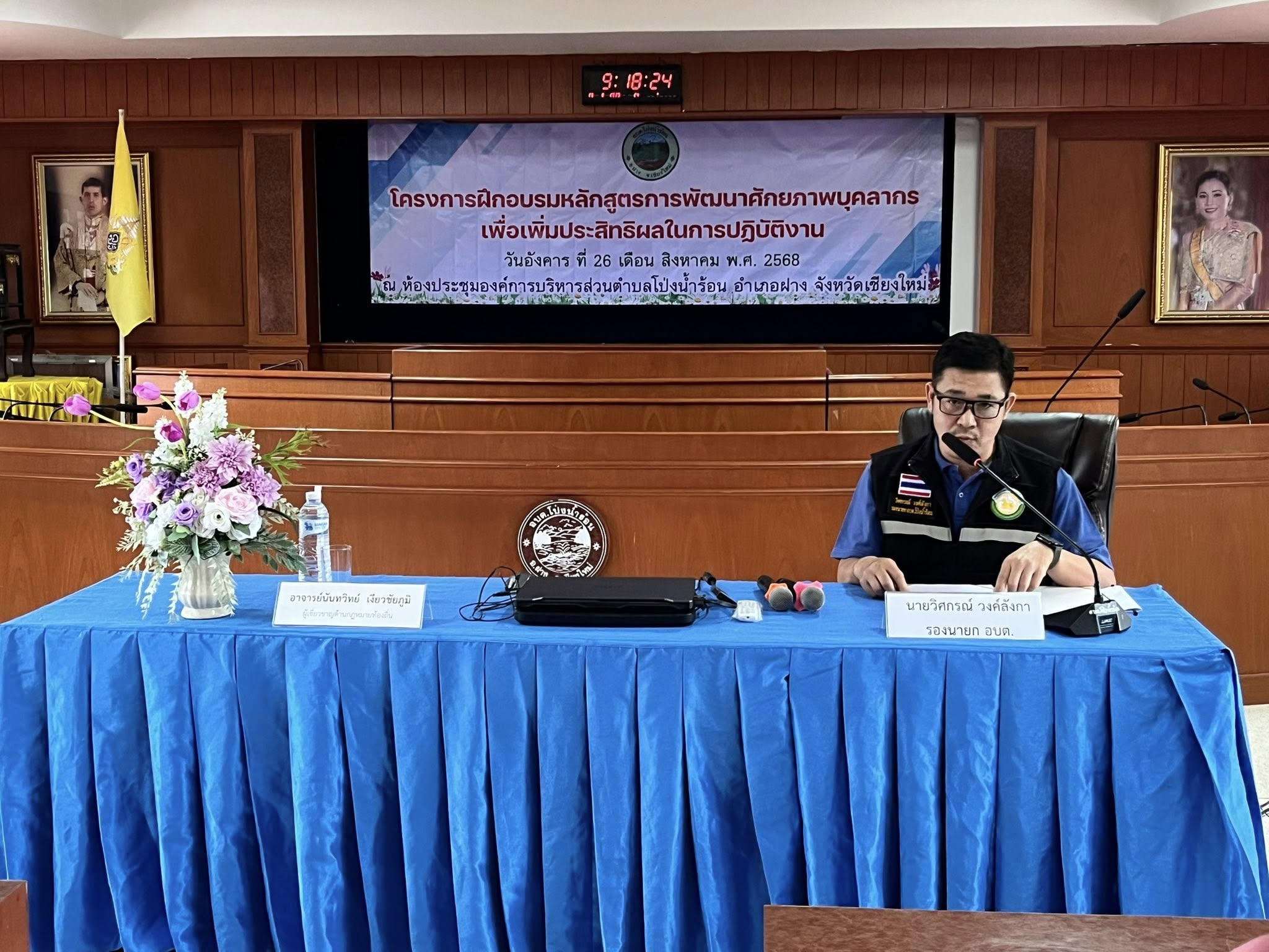วัน อังคาร ที่ 26 สิงหาคม 2568 เวลา 8.30 น. ???? งานการเจ้าหน้าที่ ???? นายวิศกรณ์ วงค์ลังกา รองนายกองค์การบริหารส่วนตำบลโป่งน้ำร้อน เป็นประธานเปิดโครงการฝึกอบรมหลักสูตรการพัฒนาศักยภาพบุคลากรเพื่อเพิ่มประสิทธิผลในการปฏิบัติงานสำหรับพนักงานส่วนตำบล ลูกจ้าง และพนักงานจ้างองค์การบริหารส่วนตำบลโป่งน้ำร้อน เพื่อให้พนักงานส่วนตำบล ลูกจ้าง และพนักงานจ้าง ได้รับการเพิ่มพูนความรู้ด้านกฎหมาย กฎระเบียบ ข้อบังคับ สามารถปฏิบัติงานตามภารกิจของหน่วยงานได้อย่างเกิดผลสัมฤทธิ์ บรรยายโดยอาจารย์นันทวิทย์ เงียวชัยภูมิ (ผู้เชี่ยวชาญด้านกฎหมายท้องถิ่น) ณ ห้องประชุมองค์การบริหารส่วนตำบลโป่งน้ำร้อน อำเภอฝาง จังหวัดเชียงใหม่