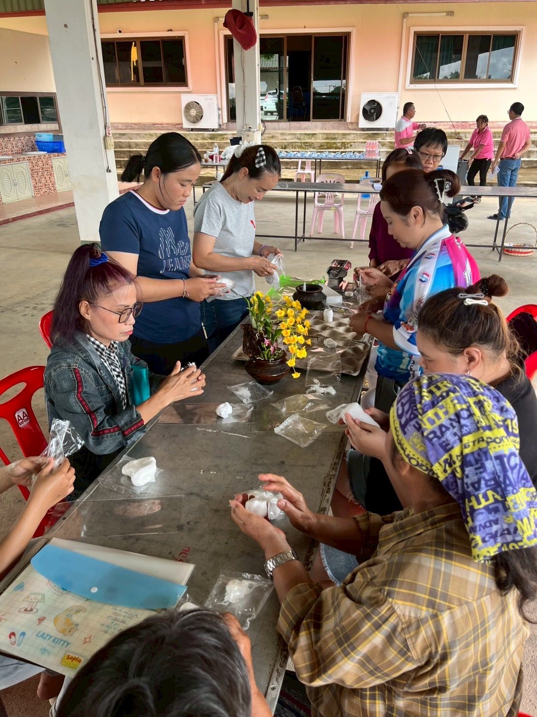 นายสมคิด พงษ์สุข นายกองค์การบริหารส่วนตำบลโป่งน้ำร้อน เปิดโครงการพัฒนาและส่งเสริมอาชีพชุมชน ประจำปีงบประมาณ 2568 การผลิตของที่ระลึก (การประดิษฐ์ดอกไม้จากดิน) จัดทำขึ้นเพื่อตอบสนองต่อความต้องการของประชาชน ในตำบลโป่งน้ำร้อน โดยมุ่งเสริมสร้างความยั่งยืนทางด้านเศรษฐกิจ โดยให้มีการส่งเสริมและพัฒนาอาชีพอย่างต่อเนื่อง วัตถุประสงค์ 1. เพื่อสร้างงานสร้างอาชีพให้แก่ประชาชนในตำบลโป่งน้ำร้อน 2. เพื่อส่งเสริมให้ประชาชนใช้เวลาว่างให้เกิดประโยชน์ ณ อาคารอเนกประสงค์ องค์การบริหารส่วนตำบลโป่งน้ำร้อน