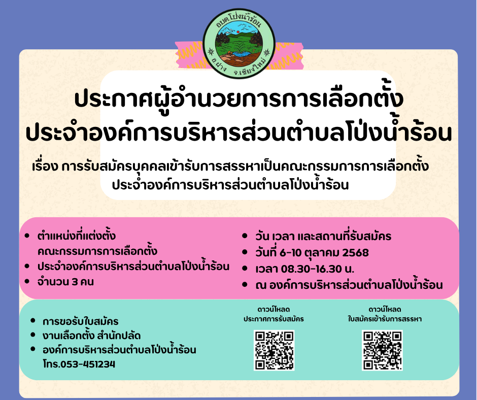 การรับสมัครบุคคลเข้ารับการสรรหาเป็นคณะกรรมการการเลือกตั้งประจำองค์การบริหารส่วนตำบลโป่งน้ำร้อน