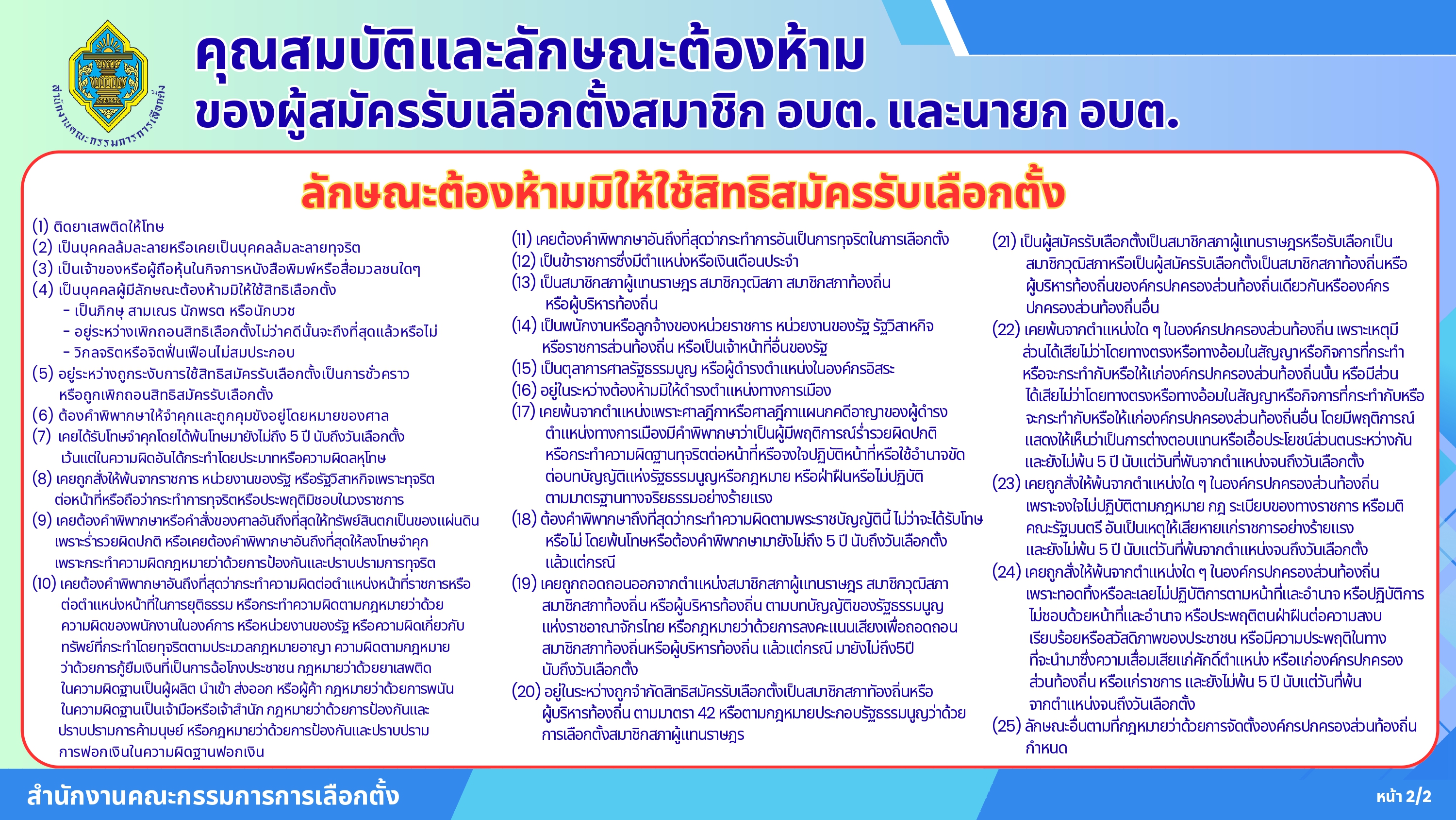 คุณสมบัติและลักษณะต้องห้ามของผู้สมัครรับเลือกตั้งสมาชิกสภา อบต.