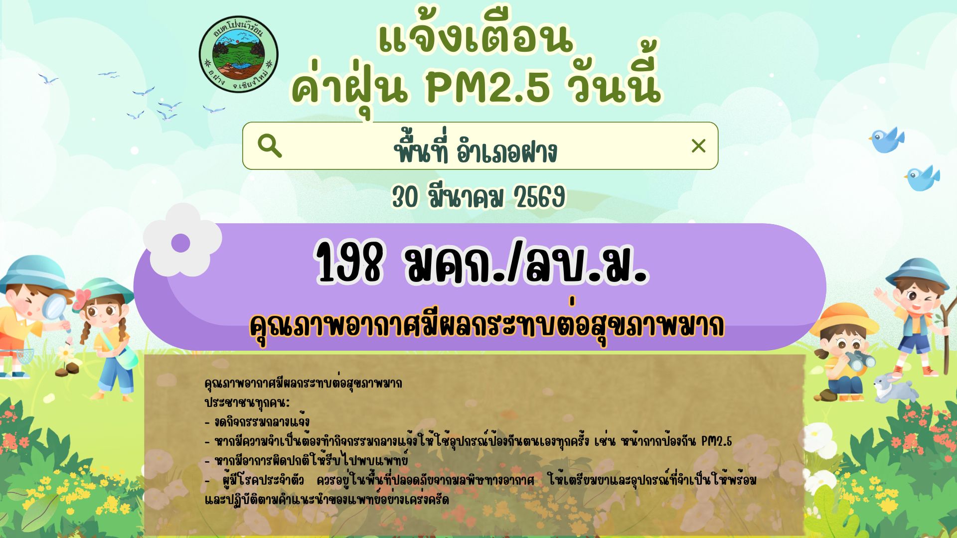 แจ้งเตือน ค่าฝุ่น PM2.5 วันที่ 30 มีนาคม 2569