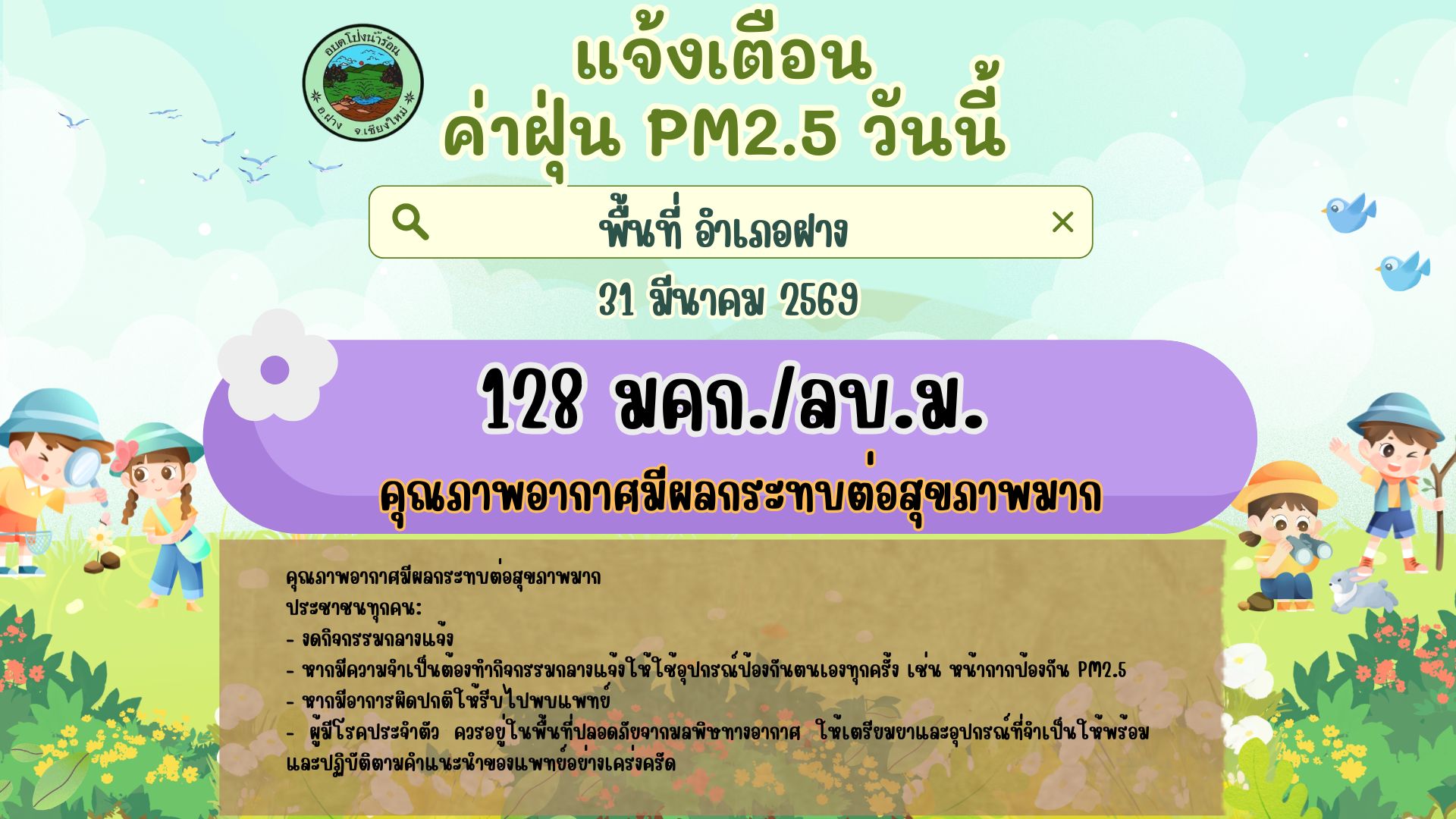 แจ้งเตือน ค่าฝุ่น PM2.5 วันที่ 31 มีนาคม 2569