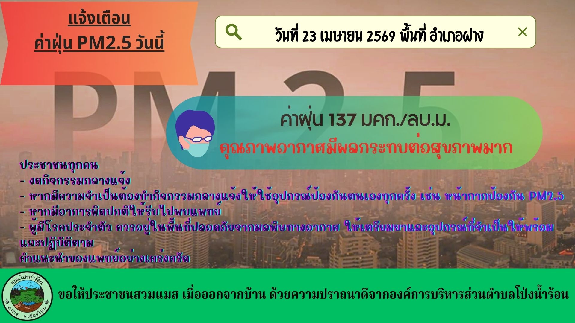 แจ้งเตือน ค่าฝุ่น PM2.5 วันนี้ 23 เมษายน 2569