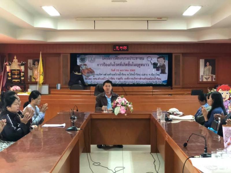 รายละเอียด : การจัดโครงการอบรมให้ความรู้และป้องกันโรคที่เกิดในฤดูหนาว วันที่ 23 มกราคม 2562 ณ ห้องประชุมองค์การบริหารส่วนตำบลโป่งน้ำร้อน
