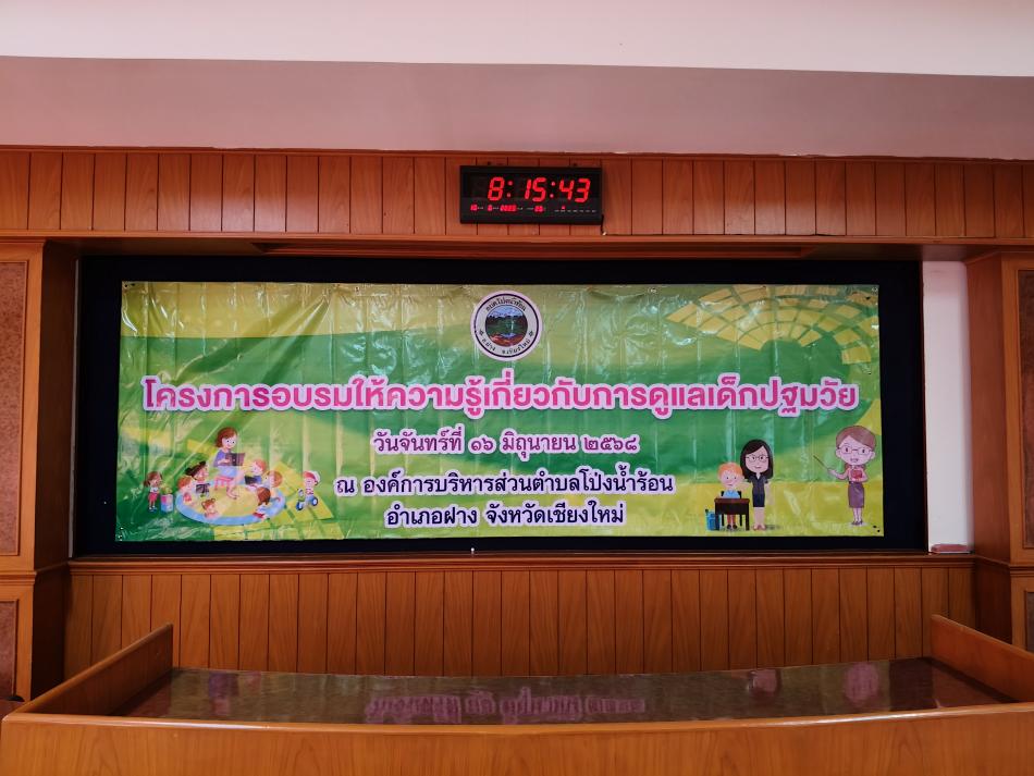 รายละเอียด : วันที่ 16 มิ.ย. 2568 กองการศึกษา องค์การบริหารส่วนตำบลโป่งน้ำร้อนได้จัดโครงการอบรมให้ความรู้เกี่ยวกับการดูแลเด็กปฐมวัย ณ องค์การบริหารส่วนตำบลโป่งน้ำร้อน อำเภอฝาง จังหวัดเชียงใหม่ เพื่อให้ความรู้แก่ผู้ปกครองของเด็กนักเรียนในศูนย์พัฒนาเด็กเล็กขององค์การบริหารส่วนตำบลโป่งน้ำร้อน