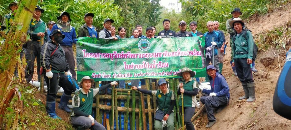รายละเอียด : วันที่ 25 มกราคม 2567 องค์การบริการส่วนตำบลโป่งน้ำร้อนร่วมกับฝ่ายปกครองในพื้นที่ กรมป่าไม้ และกองอำนวยการรักษาความมั่นคงภายในจังหวัดเชียงใหม่ (กอ.รมน.) ได้ร่วมกันทำกิจกรรมสร้างฝายกั้นน้ำและซ่อมแซมฝายกั้นน้ำ (ฝายแม้ว) จำนวน 5 ลูก ในบริเวณลำห้วยพื้นที่ป่าชุมชนบ้านต้นผึ้ง เพื่อ 1. ช่วยเก็บกักน้ำ 2. ช่วยลดความรุนแรงของการเกิดไฟป่า 3. ช่วยลดการพังทลายของหน้าดิน และลดความรุนแรงของกระแสน้ำในลำห้วย 4. ช่วยกักเก็บตะกอนและวัสดุต่างๆ ที่ไหลลงมากับน้ำในลำห้วย 6. ช่วยเพิ่มความหลากหลายทางชีวภาพ