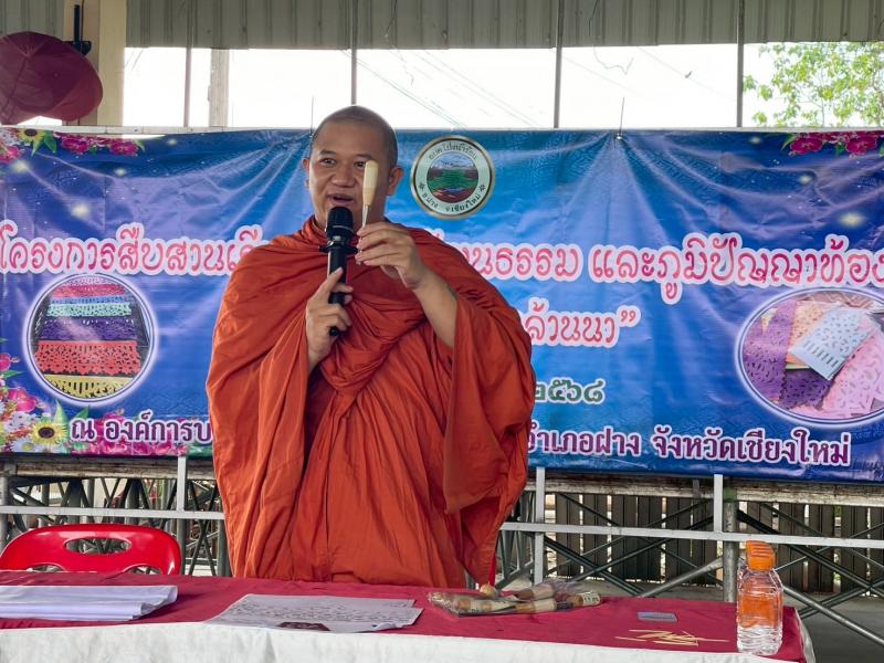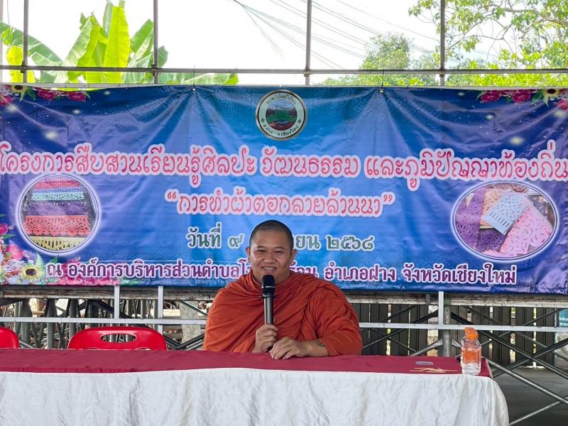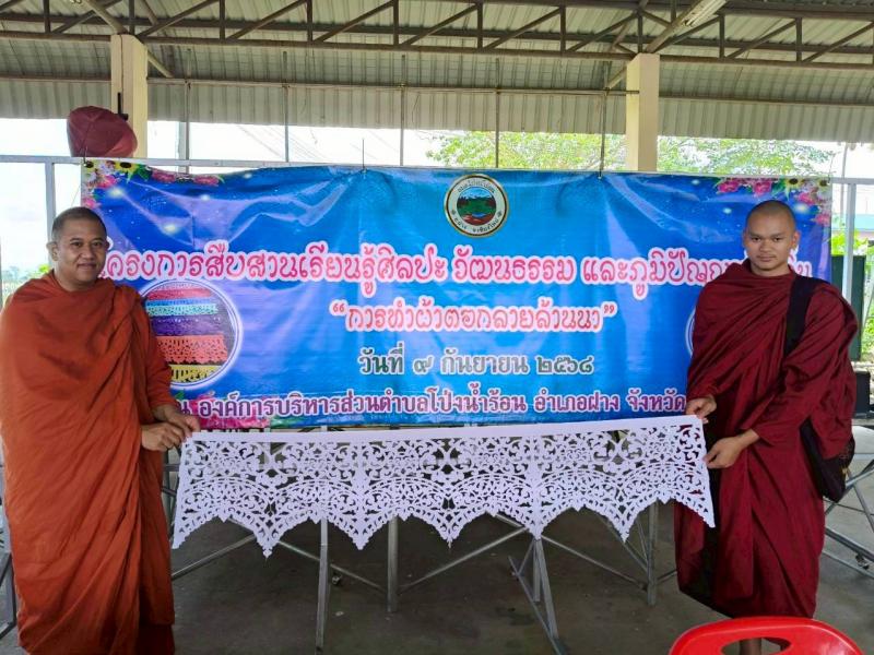 โดยมีท่านพระครูพิเชษฐ์ เจ้าอาวาสวัดสวนดอกบัวนาค (วัดบ้านธิ) ให้ความอนุเคราะห์เป็นวิทยากรสอนการทำผ้าตอกลายล้านนา ให้แก่เยาวชนและประชาชนตำบลโป่งน้ำร้อนที่สนใจ