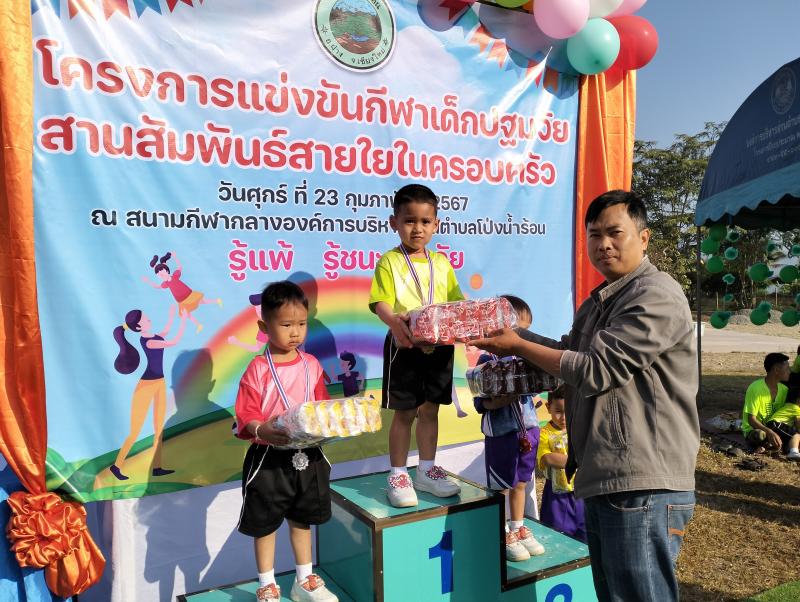 รายละเอียด : การแข่งขันกีฬาของศูนย์พัฒนาเด็กเล็กในสังกัด อบต.โป่งน้ำร้อน โดยเป็นชนิดกีฬาหรือกิจกรรมที่สอดคล้องกับพัฒนาการของเด็ก รวมทั้งมีกิจกรรมที่ให้ผู้ปกครองมีส่วนร่วม เพื่อสร้างความสัมพันธ์ภายในครอบครัวของเด็ก