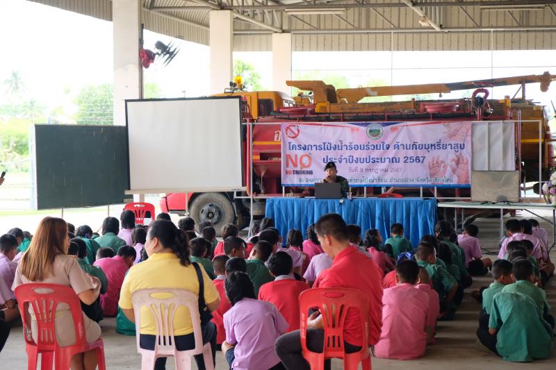 รายละเอียด : (วันอังคาร ที่ 9 กรกฎาคม 2567) องค์การบริหารส่วนตำบลโป่งน้ำร้อน ร่วมกับเครือข่ายสถานศึกษาในพื้นที่ตำบลโป่งน้ำร้อน ได้บรูณาการจัดโครงการโป่งน้ำร้อนร่วมใจ ต้านภัยบุหรี่ยาสูบ ซึ่งมีวิทยากรจากทหารชุดรักษาความปลอดภัย มูลนิธิชัยพัฒนา มาให้ความรู้ เพื่อรณรงค์ให้เยาวชนเห็นความสำคัญของโทษและพิษของยาเสพติด บุหรี่ยาสูบ ผลกระทบและความสูญเสีย ทั้งทางตรงและทางอ้อม ลด ละ เลิกสูบบุหรี่ และเกิดการมีส่วนร่วมในการดำเนินการป้องกันและแก้ไขปัญหายาเสพติด บุหรี่ยาสูบ ในโรงเรียนและชุมชน โดยมีนางทัศวรรณ์ พันธุพิน รองนายกองค์การบริหารส่วนตำบลโป่งน้ำร้อน เป็นประธานเปิดโครงการฯ