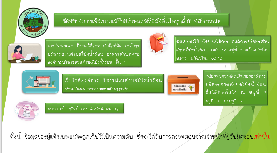 ประชาสัมพันธ์ช่องทางแจ้งเบาะแสป้ายโฆษณาหรือสิ่งอื่นใดรุกล้ำทางสาธารณะ [10 ตุลาคม 2565]