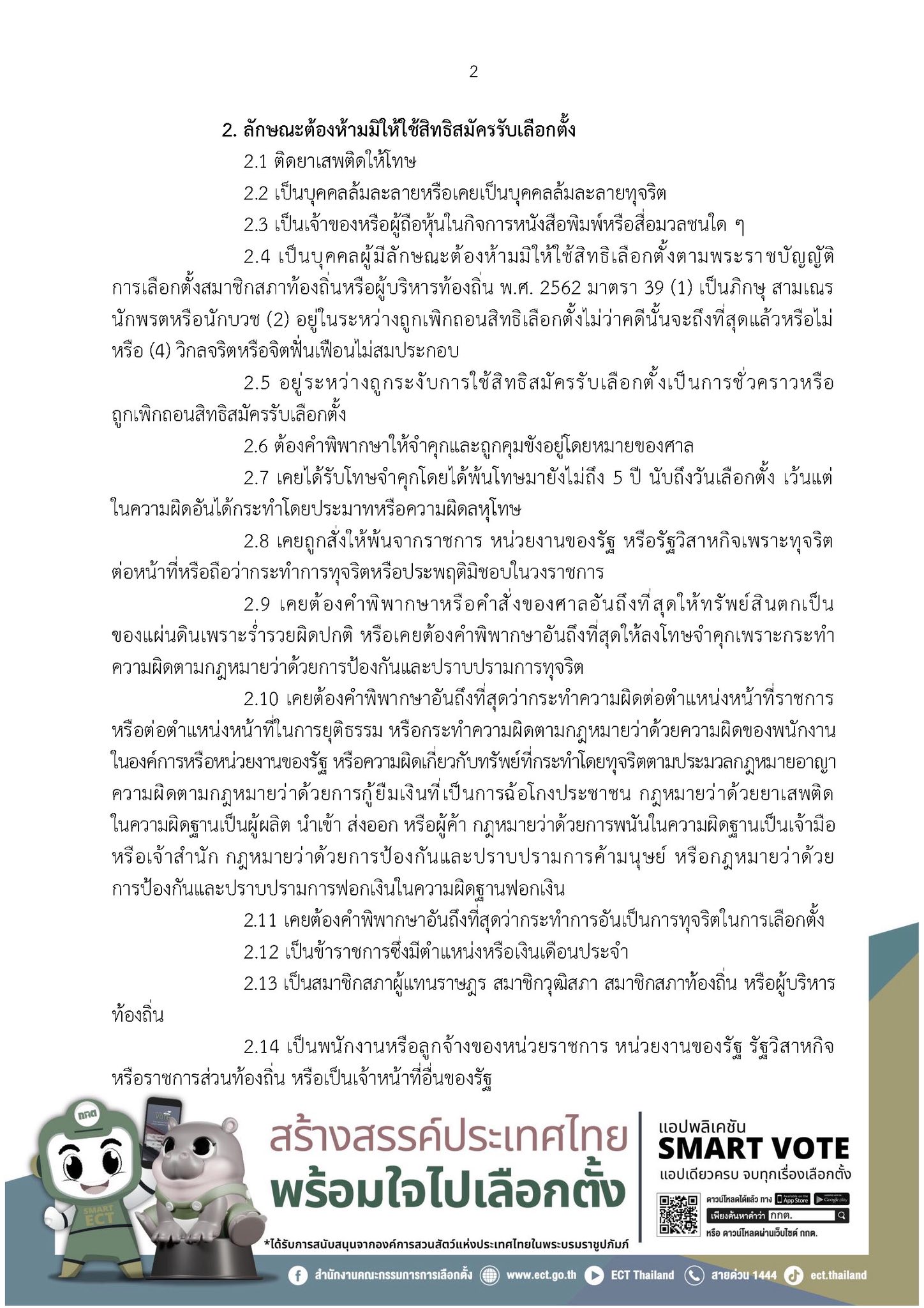 2. ลักษณะต้องห้ามมิให้ใช้สิทธิสมัครรับเลือกตั้ง