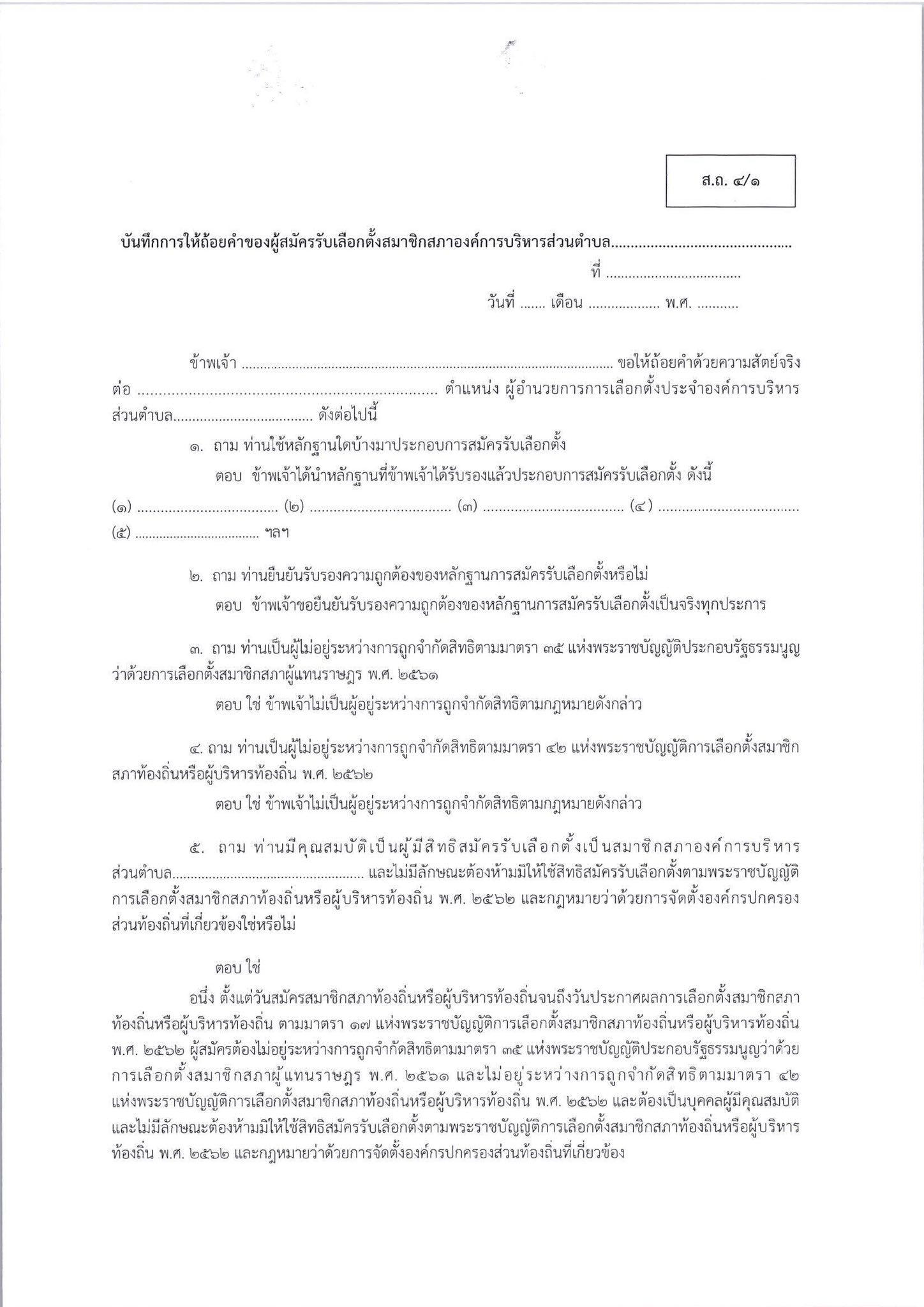 3.1 ใบสมัครรับเลือกตั้งตามแบบ ส.ถ./ผ.ถ. 4/1