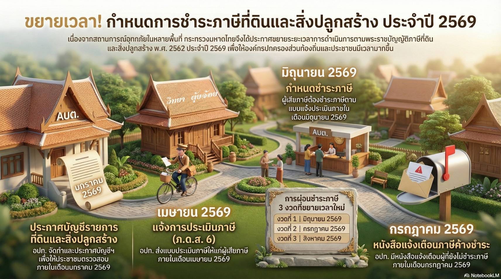 ประชาสัมพันธ์ กำหนดการชำระภาษีที่ดินและสิ่งปลูกสร้าง ประจำปี 2569