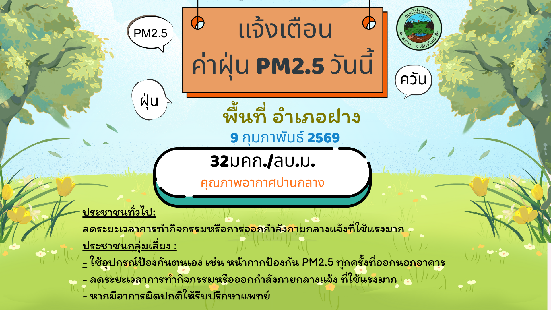 แจ้งเตือน ค่าฝุ่น PM2.5 วันนี้ 9 กุมภาพันธ์ 2569