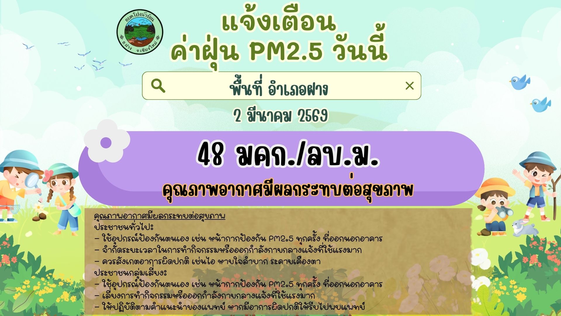 แจ้งเตือน ค่าฝุ่น PM2.5 วันนี้ 2 มีนาคม 2569
