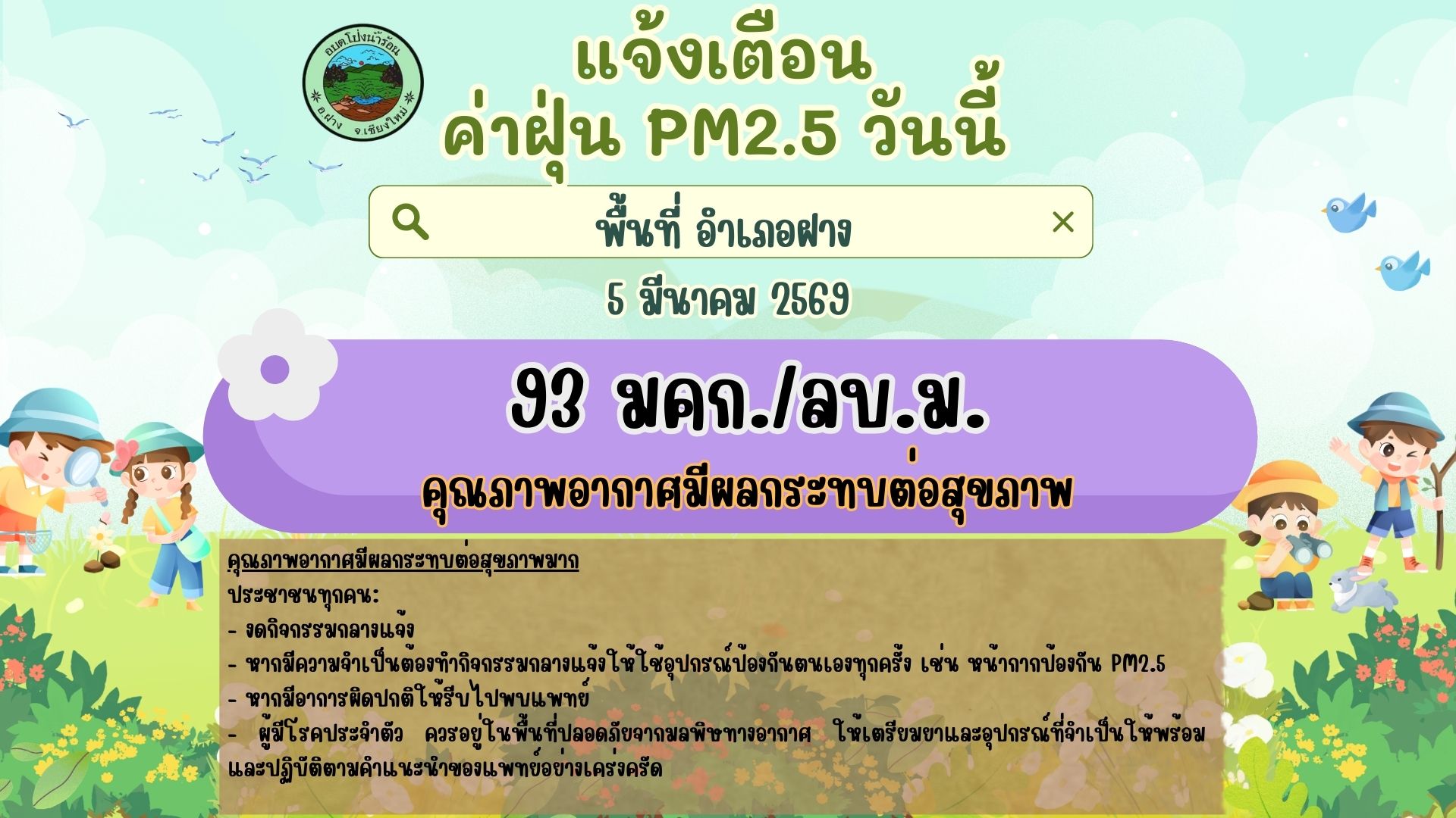 แจ้งเตือน ค่าฝุ่น PM2.5 วันนี้ 5 มีนาคม 2569