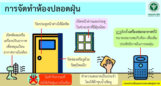 ช่วงนี้หลายพื้นที่มีฝุ่นสูง หนึ่งในวิธีการลดการสัมผัสฝุ่น คือ อยู่ใน #ห้องปลอดฝุ่น โดยเฉพาะกลุ่มเสี่ยง