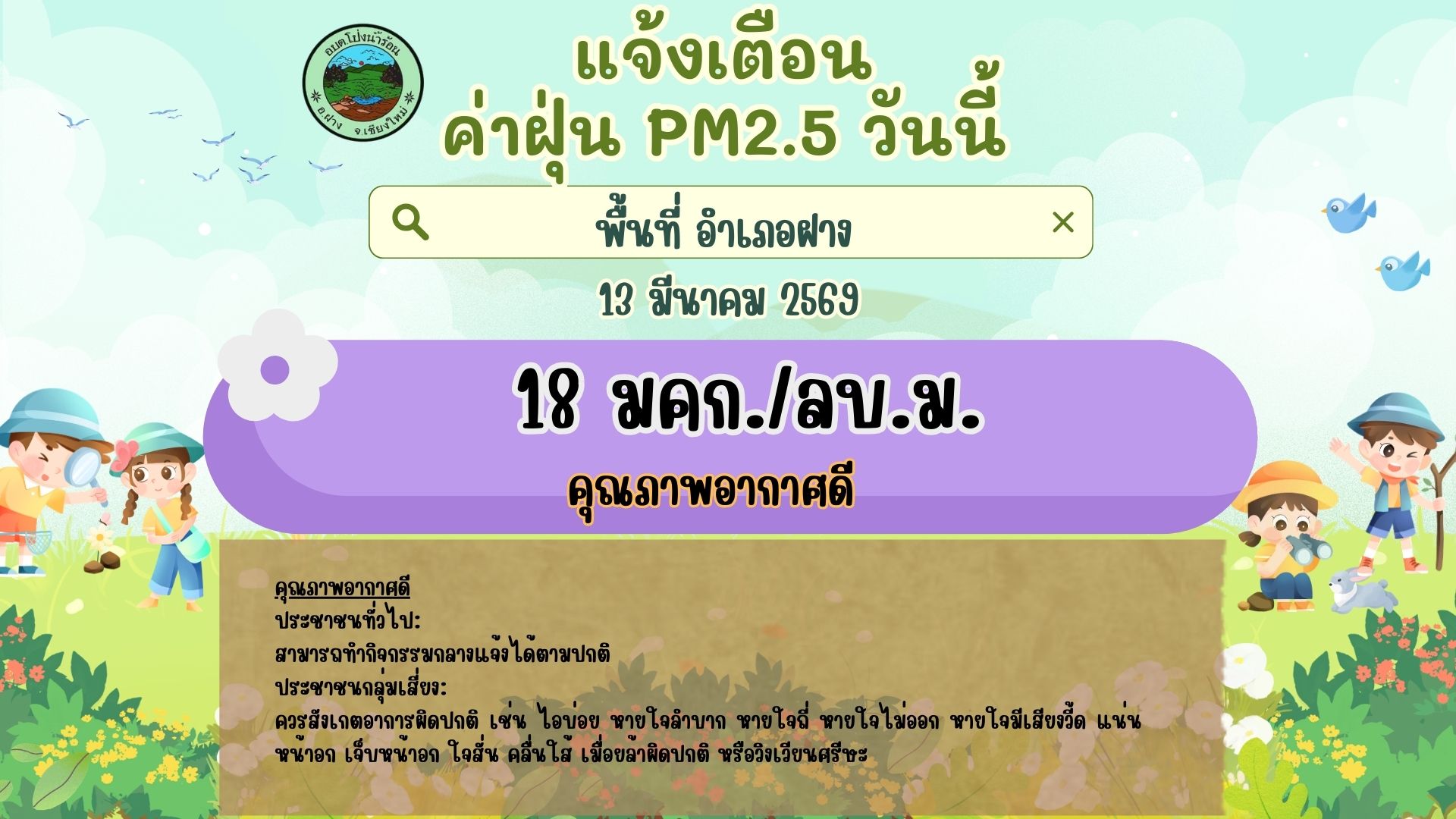 แจ้งเตือน ค่าฝุ่น PM2.5 วันนี้ 13 มีนาคม 2569