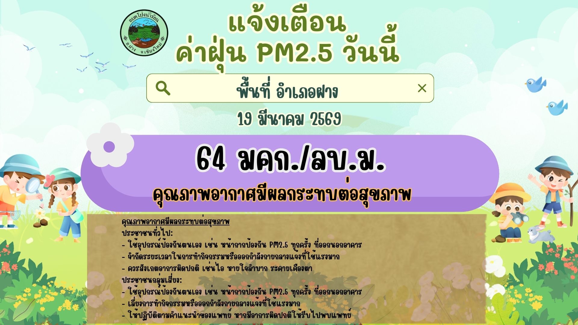 แจ้งเตือน ค่าฝุ่น PM2.5 วันนี้ 19 มีนาคม 2569